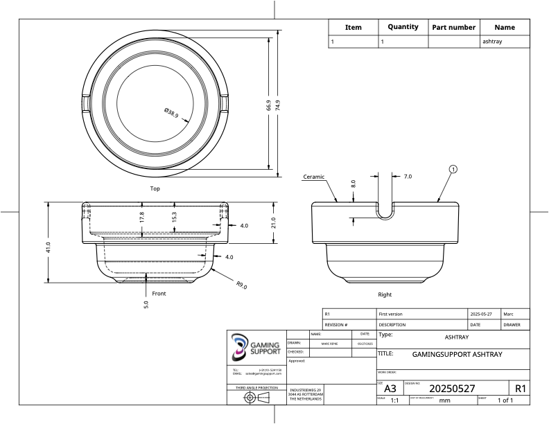 Original ceramic casino gaming ashtray, European style, White, 3 inch diameter.Logo can be added upon request.